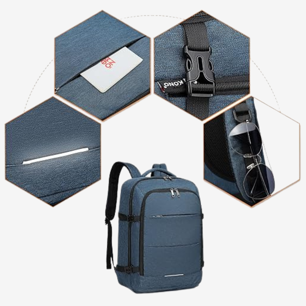 Sac à dos à ouverture valise 45 × 36 × 20 cm, conçu pour organiser vêtements, documents et ordinateur avec un port confortable lors des déplacements du quotidien et des courts séjours.