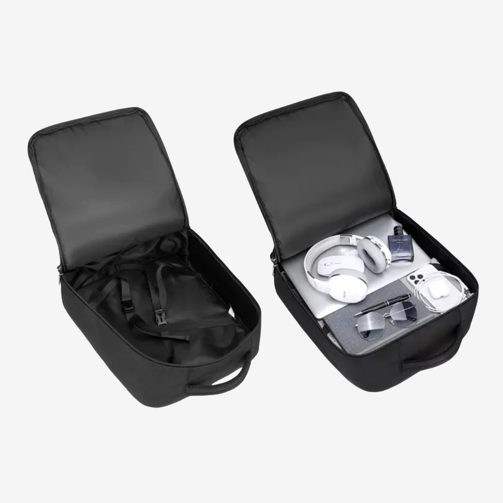 L’essentiel toujours bien organisé, dans un sac pensé pour bouger librement et sans stress.