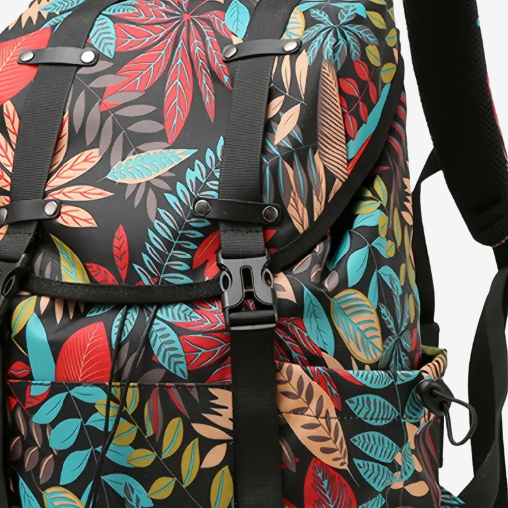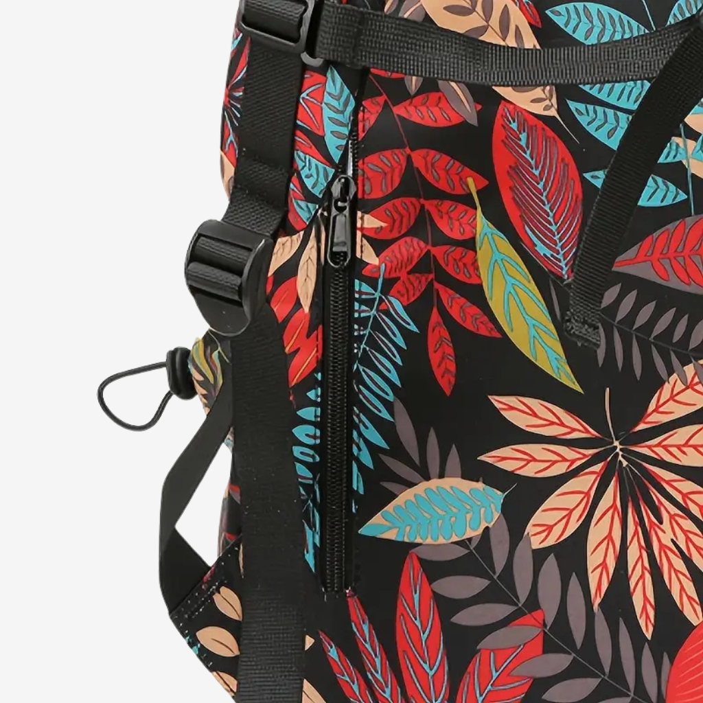 Bretelles rembourrées et maintien confortable, avec un motif feuillage tendance pour voyager avec style et légèreté.