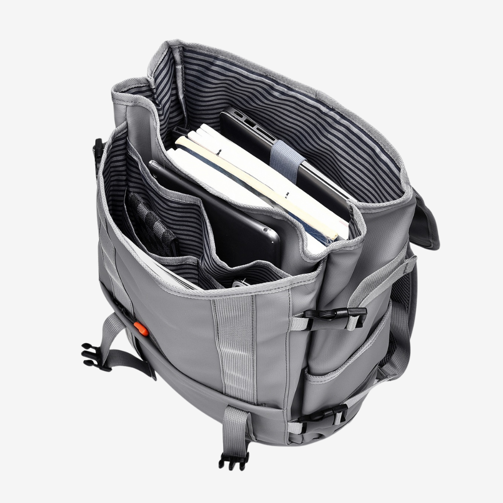L’essentiel toujours bien organisé, dans un sac pensé pour bouger librement et efficacement.