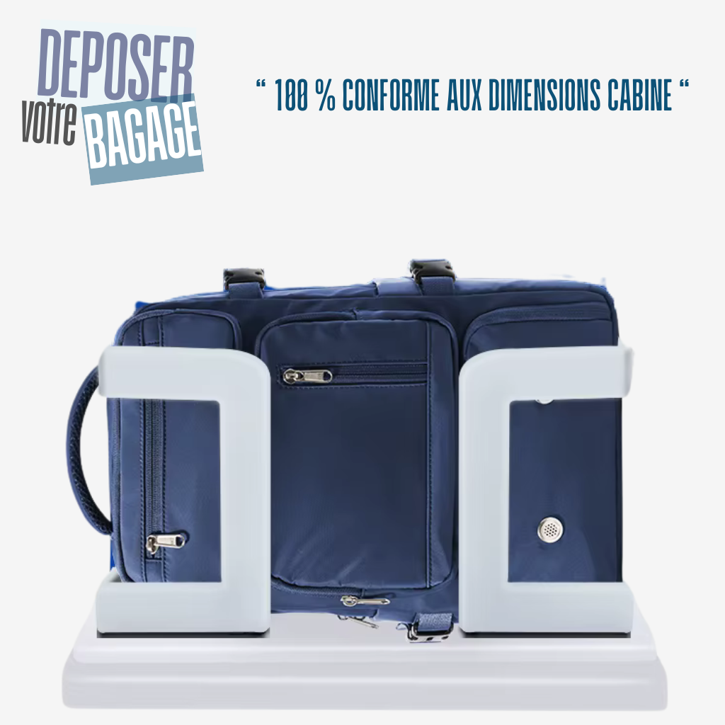Nous sélectionnons des modèles spécialement pensés pour se glisser sous le siège (exemple : formats 40×30×20 cm, 45×36×20 cm). Les formats plus grands, dits “cabine plus ou payant”, se rangent dans le compartiment supérieur.