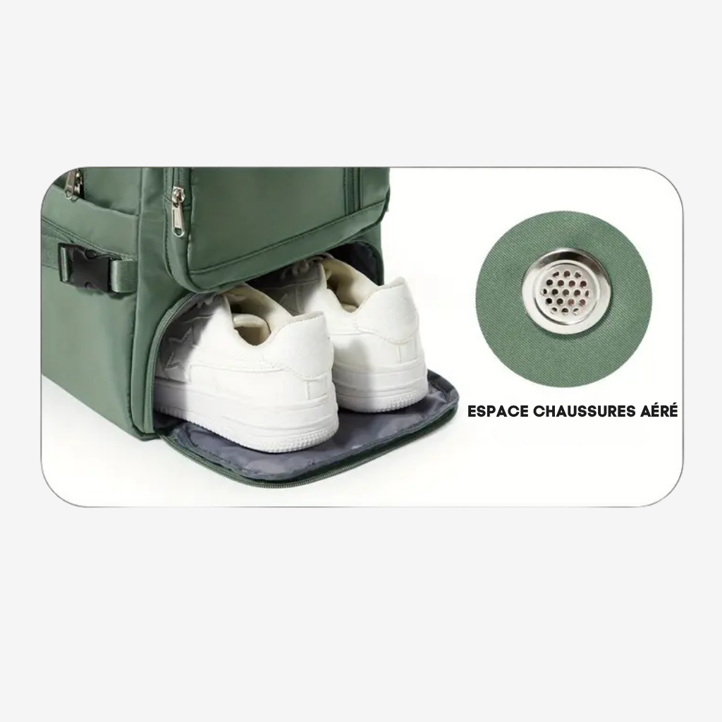 Pratique : compartiment chaussures séparé, accès rapide aux poches et format compatible Vueling pour embarquer sans payer de supplément bagage.