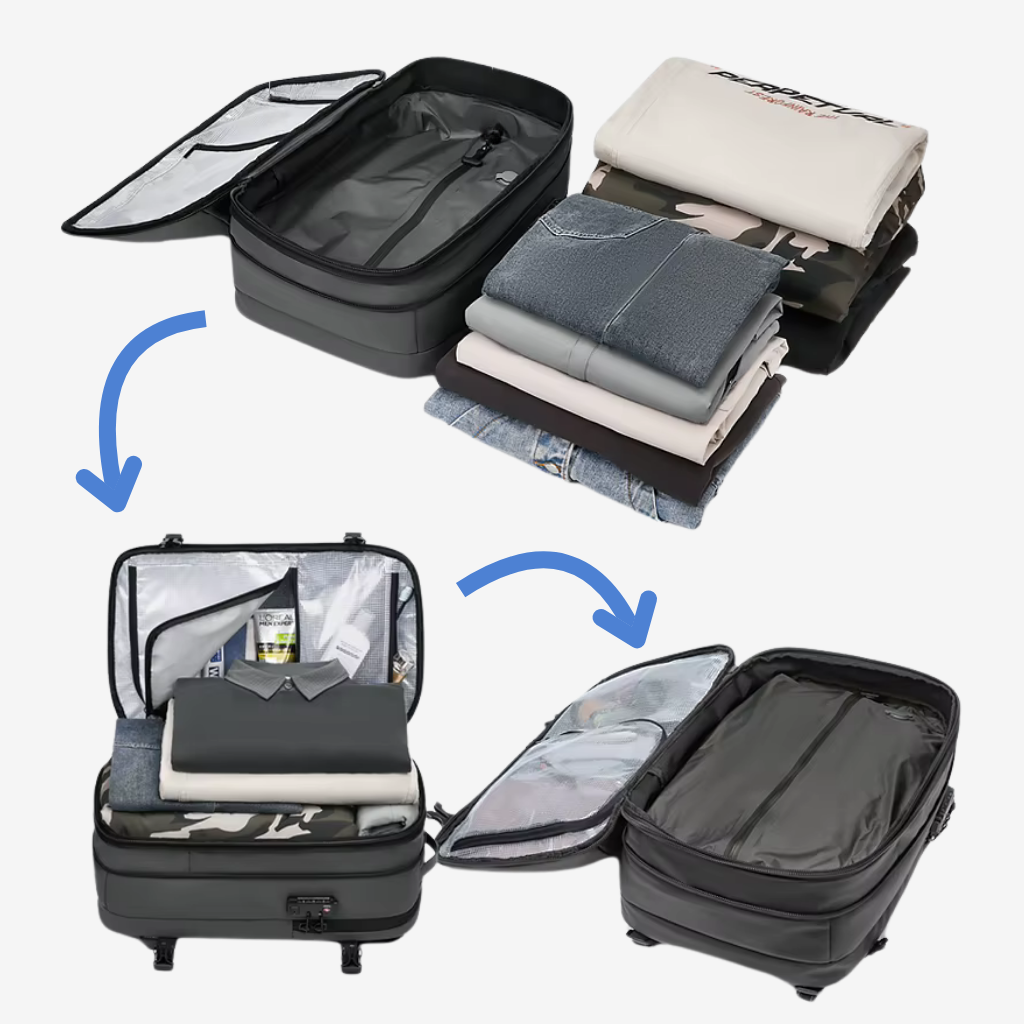 Voyagez l’esprit léger avec un sac qui optimise chaque centimètre, compresse vos vêtements et maximise l’espace sans effort.
