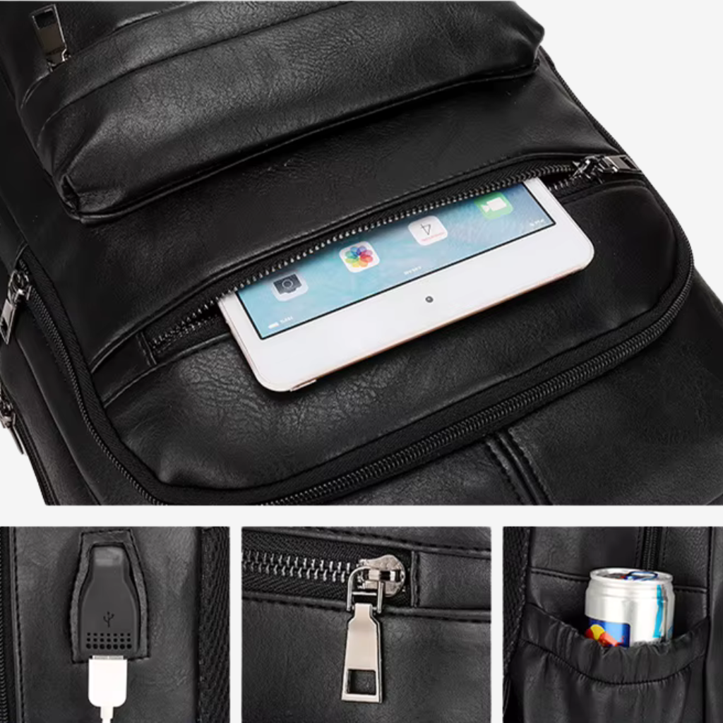 Pratique : port USB extérieur pour recharger vos appareils, format compact favorisant la mobilité et organisation simple pour partir léger sans s’encombrer.