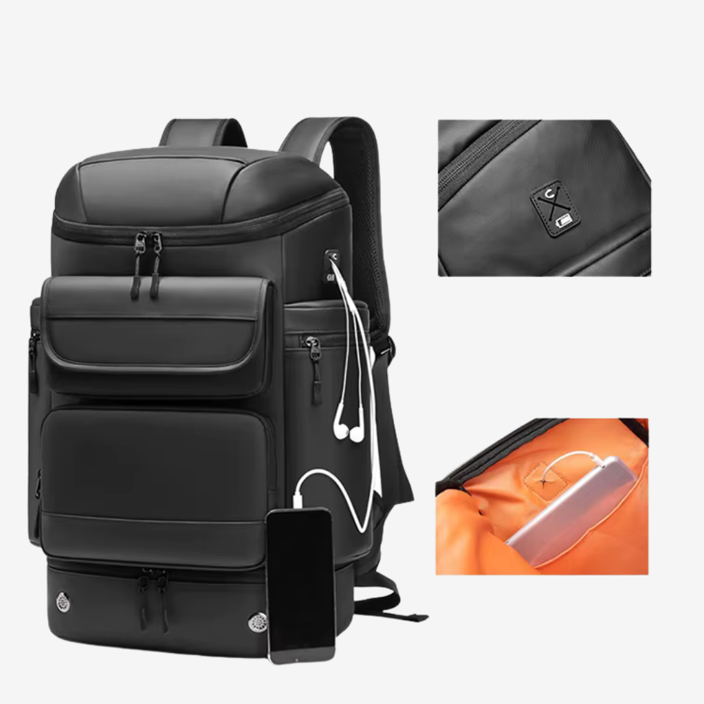 Sac à dos grande capacité 55 × 31 × 20 cm, conçu pour transporter un volume généreux avec une organisation complète et un port confortable lors des courts séjours prolongés et déplacements organisés.