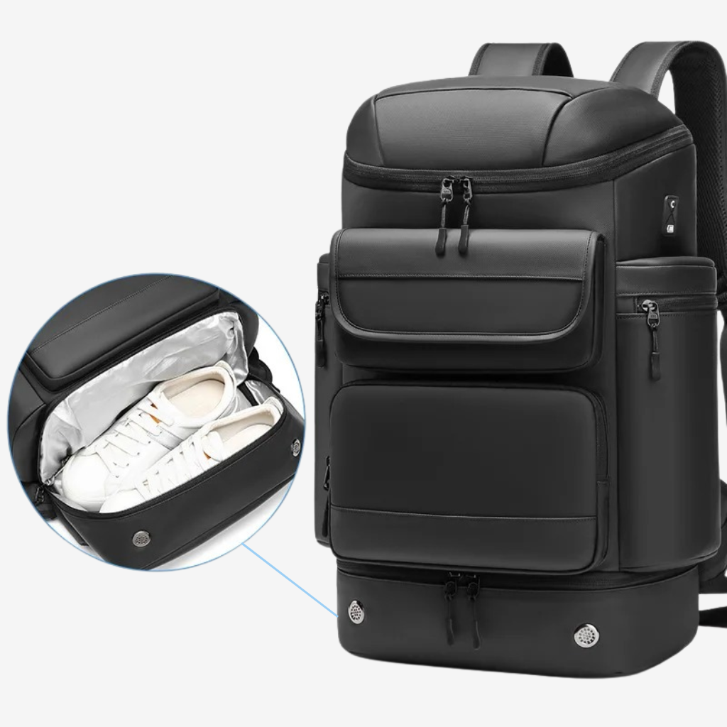 Compartiment inférieur étanche pour chaussures ou linge, idéal pour les voyages.