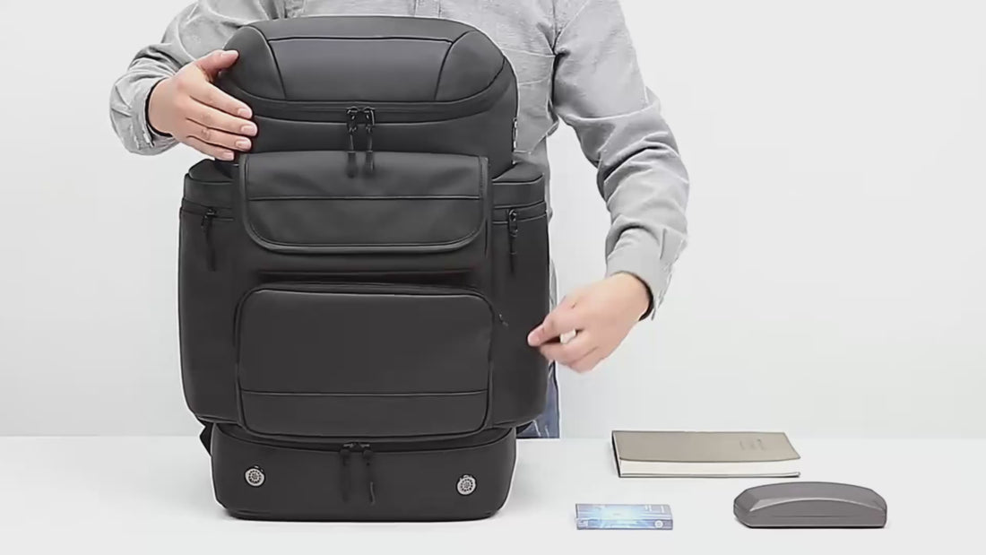 Organisation : ouverture large façon valise pour un rangement rapide, compartiment principal spacieux, poches internes zippées, compartiment chaussures étanche et espace dédié pour ordinateur jusqu’à 17 pouces afin de structurer efficacement le contenu.