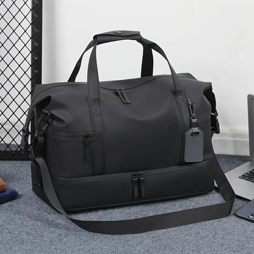 Sac bandoulière spacieux 45 × 35 × 20 cm, conçu pour transporter vêtements et accessoires avec une organisation complète et un port confortable lors des courts séjours et déplacements actifs.